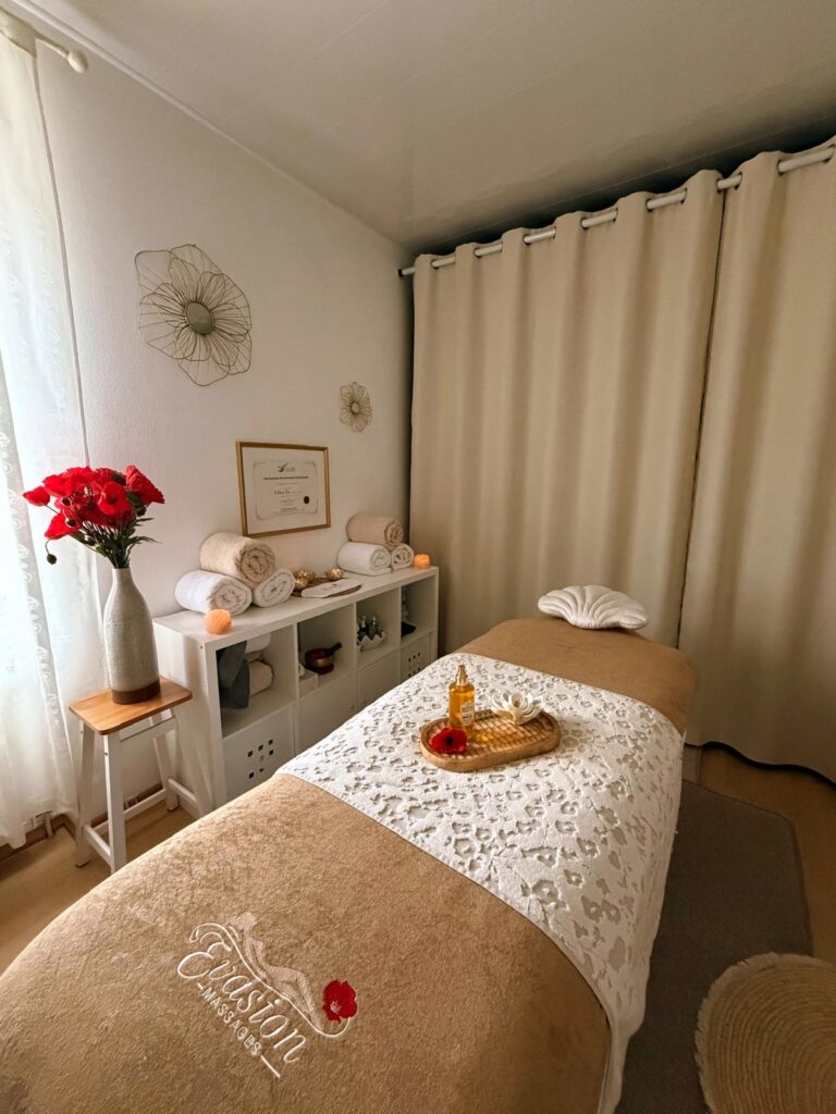 Niché au coeur d’une ancienne grange rénovée, notre cabinet professionnel de massages à Colmar (68) allie charme authentique et confort moderne. Dans une atmosphère douce et cocooning, plongez dans une expérience de détente avec nos massages corporels relaxants et nos gammes expertes minceur & légèreté de drainages lymphatiques et massages sculptants.