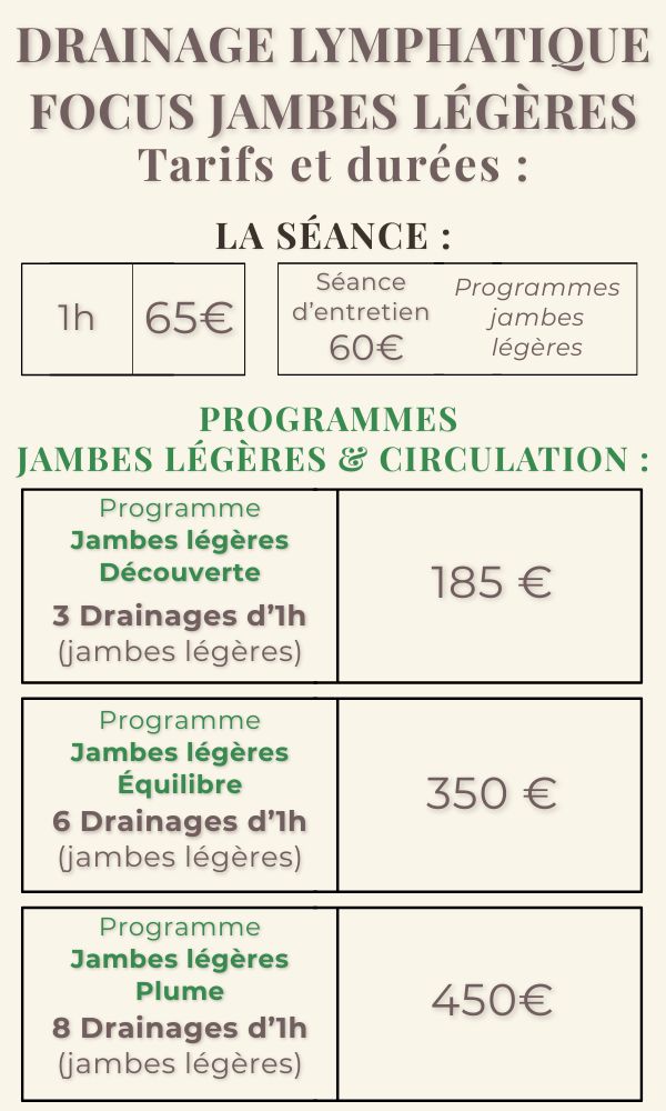 Nos drainages sont proposés à la séance ou en Programmes LégÚreté, pour retrouver légÚreté et sérénité durablement.