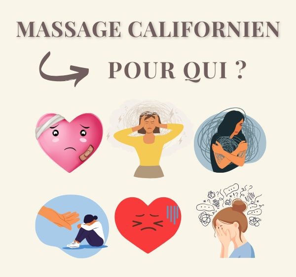 Le Massage Californien sâadresse Ă toutes celles et ceux qui recherchent un massage enveloppant et doux, une paix intĂ©rieure et une rĂ©duction de la tension nerveuse.