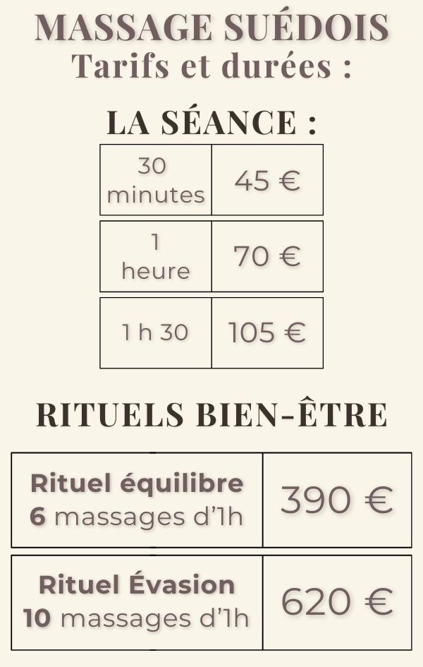 Massage Suédois (30min, 1h, 1h30)